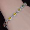 The natural sapphires display a beautiful range of lively hues — including blue, green, yellow, orange, and pink tones — arranged to create a visually striking and balanced multi-color appearance. These are natural earth-mined sapphires with excellent brilliance and transparency. They are eye-clean to the naked eye, and while some stones may show minor natural inclusions under 10x magnification, they do not affect the overall beauty or sparkle of the bracelet.