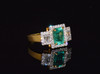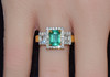 Certified natural emerald and diamond 18K solid white and yellow gold halo ring.
