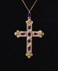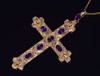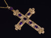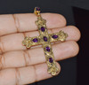 Certified Natural 2.95Cts Amethyst 18K 750 Solid Gold Engraved Cross Etruscan Pendant