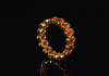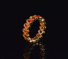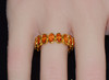 Top quality natural 5.04CTS orange sapphire 18K yellow gold wedding band ring. This dainty stacking band features a single row of 16 oval brilliant cut natural sapphires adding up to 5.04CTS. The high shine yellow gold finish and sparkling vibrant orange sapphires give this eternity band a unique radiance. The high quality natural vivid sapphires are bezel set into solid 18K yellow gold. This ring is meticulously made with attention to fine details throughout. All the sapphire bezels in this ring have an elegant rounded smooth edge, which give this ring a very high end feel and make it very comfortable to wear.