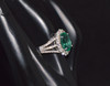 The emerald in this ring has a desirable vivid bluish green color with shades of dark green and neon green colors. The emerald has water like see through clarity. The emerald is clean with minor inclusions only. Very rare for an emerald of this huge size with such good vibrant buish green color. The emerald is very shimmery and sparkly and has a beautiful play of color due to all the facets, huge size and water like clarity.