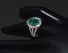 GIA certified natural 18K solid gold 4.97CTS diamond and emerald cocktail ring. The ring features a 3.65CT natural emerald. The oval brilliant cut emerald is surrounded with 1.32CTS of round brilliant cut diamonds. The whole ring, including the three row split shank of this ring is covered with diamonds.