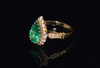 - The top part of the ring with the emerald and diamonds measures approximately 16MM x 12MM and rises 7MM from the finger.